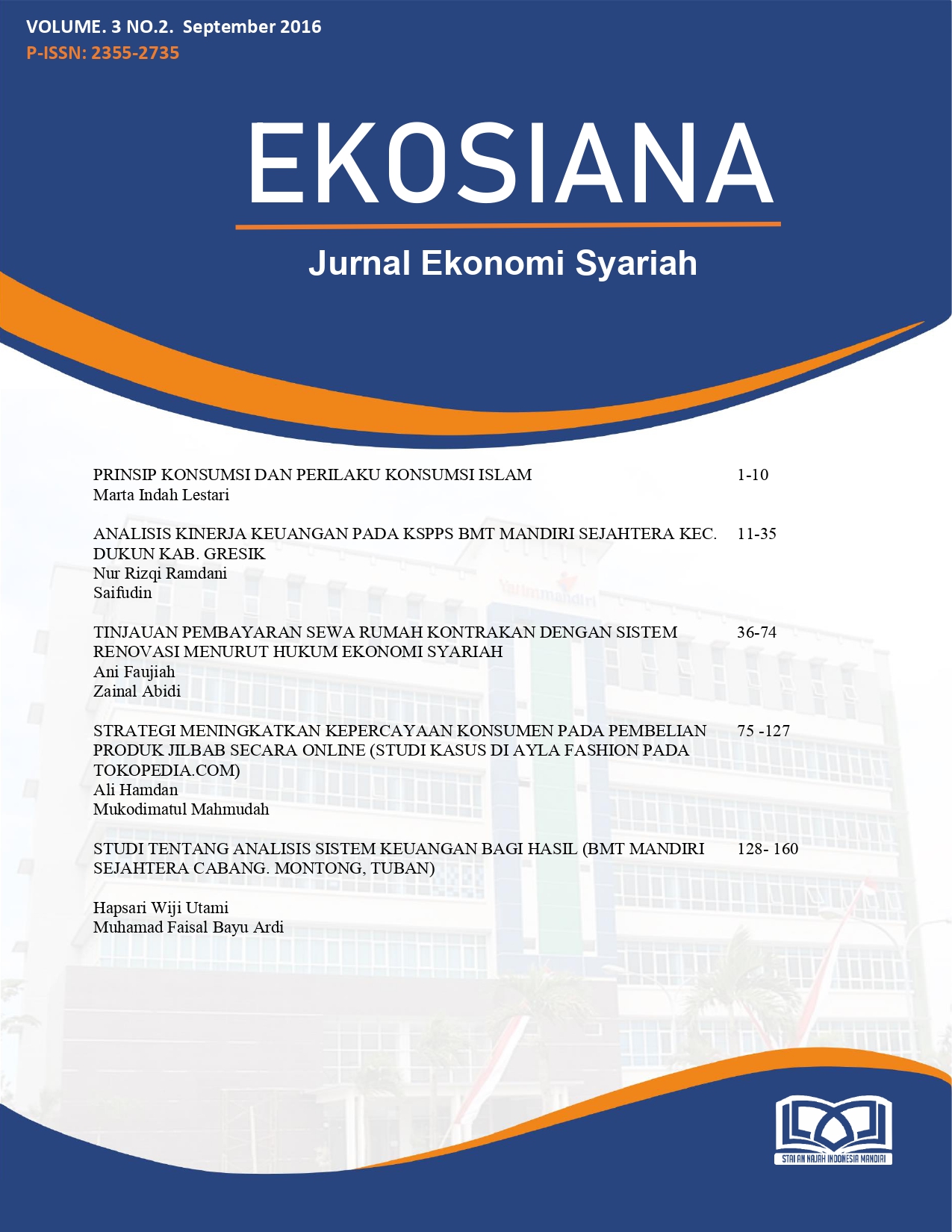 Vol. 3 No. 2 (2016): EKOSIANA : JURNAL EKONOMI SYARIAH